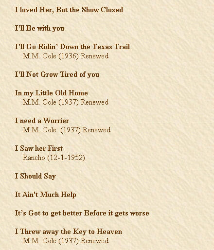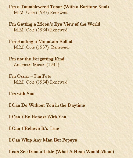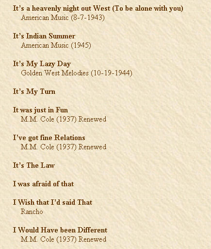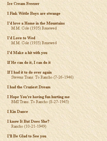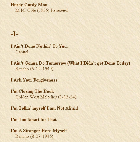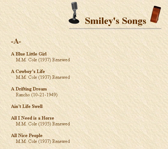 Index of /OTR/Smiley Burnette - (OTRR Certified - Ver 2)Missing Episodes/Smiley Burnette Songs/Smiley's Song list/